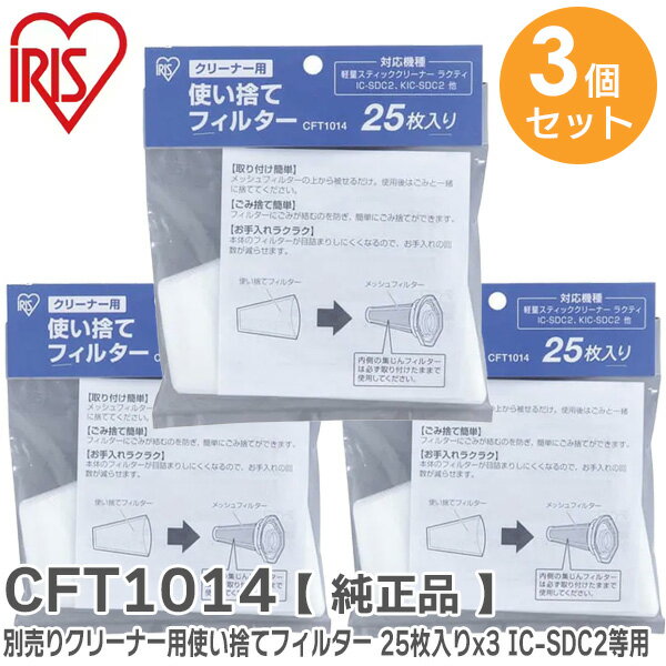 CFT1014 【 3個セット 】 【 純正品 】ラクティ用使い捨てフィルター 別売りクリーナー用使い捨てフィルター 25枚入り x 3個 IC-SDC2 / KIC-SDC2 専用 アイリスオーヤマ