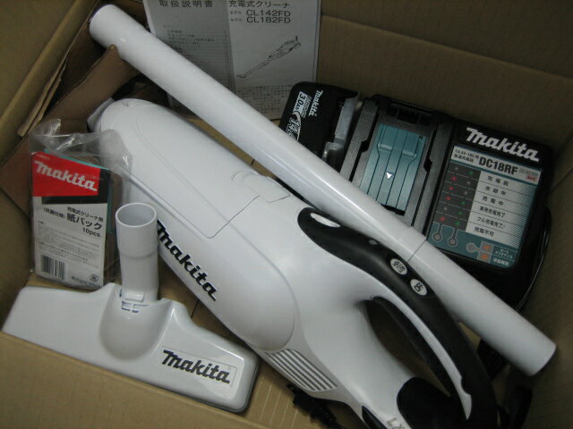 当店だけ!バッテリー充電器も1年保証! マキタ CL142FDRFW コードレス 掃除機 14.4V 紙パック式 CL142FDZW + バッテリー BL1430B + 急速充電器DC18RF 充電式