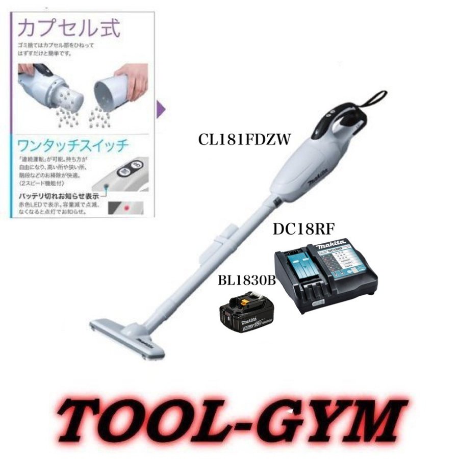 当店だけ!バッテリー充電器も1年保証! マキタ 18V コードレス 掃除機 カプセル式 CL181FDZW + バッテリー BL1830B + 急速充電器DC18RF 充電式 クリーナー リチウムイオ