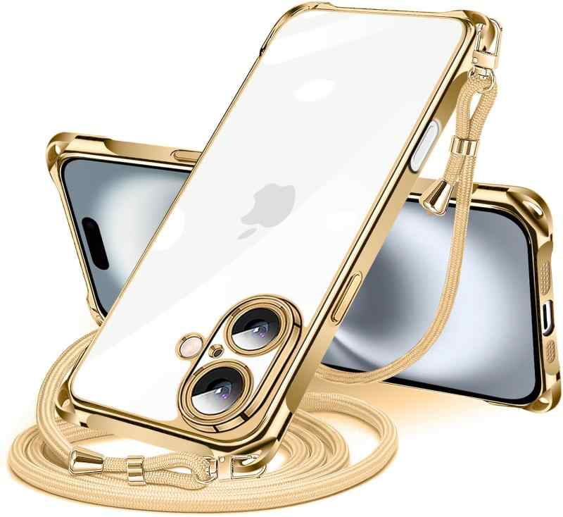 iPhone 16 Plus 用 ケース クリア ショルダー iPhone16plus 用 スマホケース アイフォン16Plus カバー 肩掛け 斜めかけ 縄掛けケース 透明 TPU 薄型 軽量 耐衝